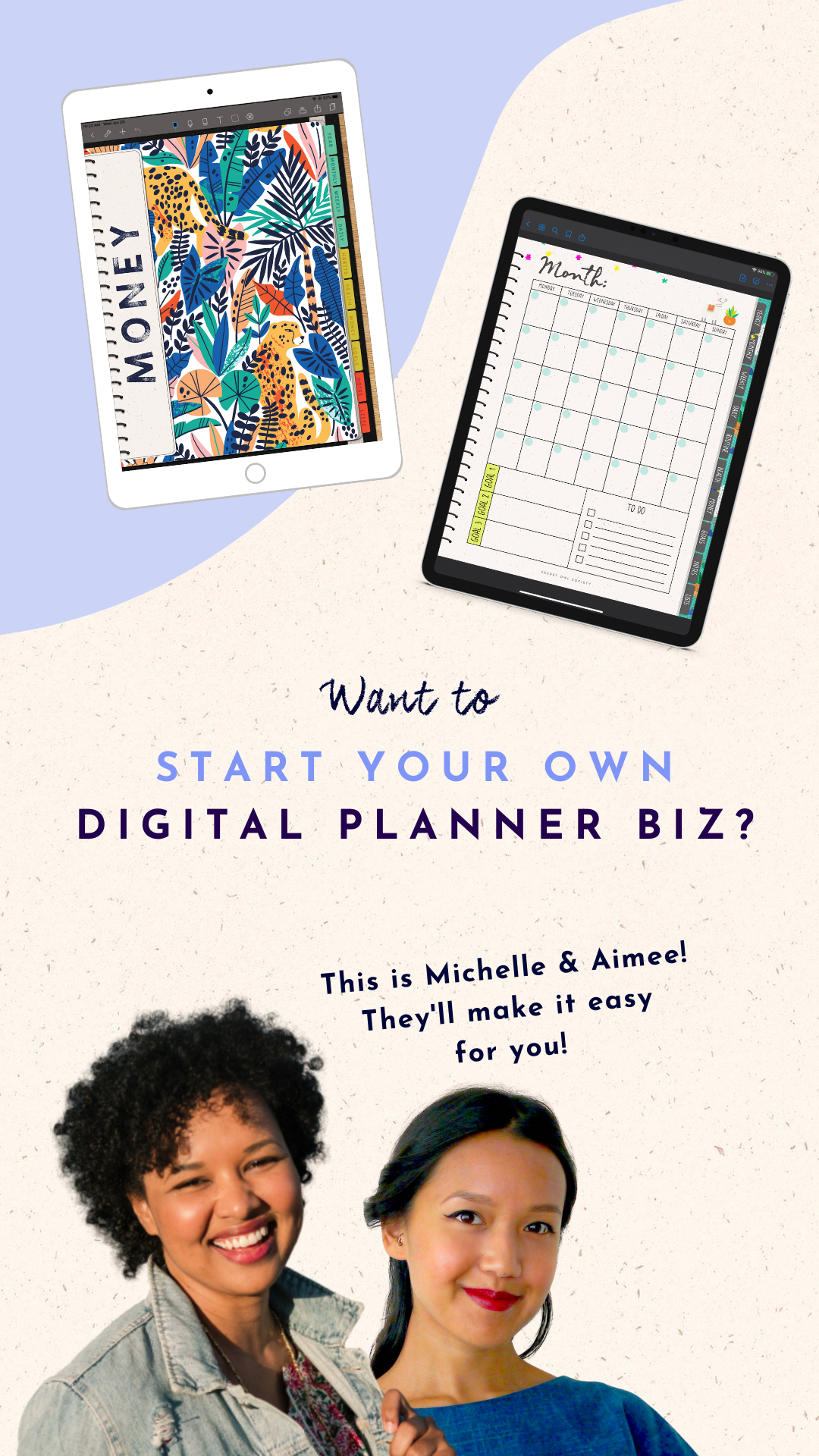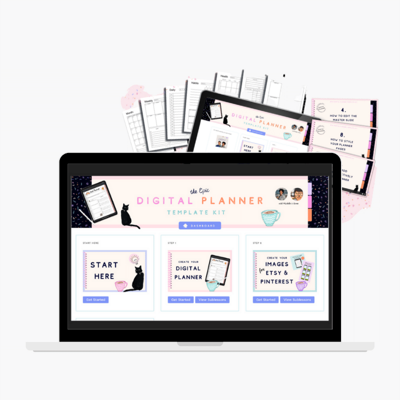 Create your own beautiful digital planners with easeMichelle and Aimee both own Etsy shops and they love the world of using and selling digital planners. Together, they made the Digital Planner Template Kit to help you make your own digital planners for sale - without the giant learning curve and stress. Sound good?